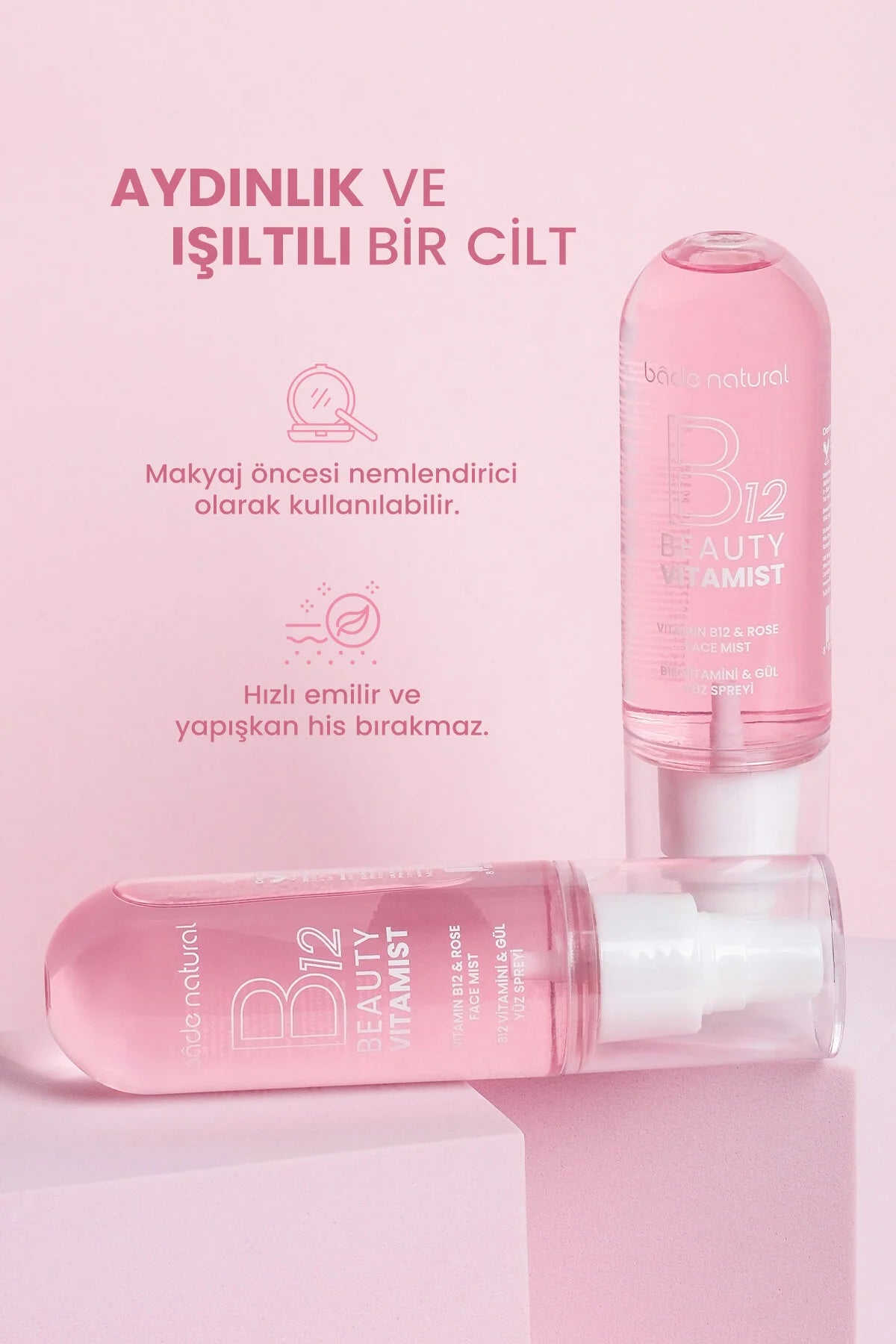 Krijg een heldere, frisse en stralende huid met de Bâde Natural Beauty Vitamist met Vitamine B12 en Rozenwater. Deze krachtige, revitaliserende gezichtsspray is speciaal ontwikkeld om vermoeide, doffe en vochtarme huid te herstellen. De formule combineert vitamines, plantenextracten en natuurlijke antioxidantendie de huid intens voeden, hydrateren en beschermen tegen schadelijke invloeden van buitenaf zoals zon, wind en luchtvervuiling.
