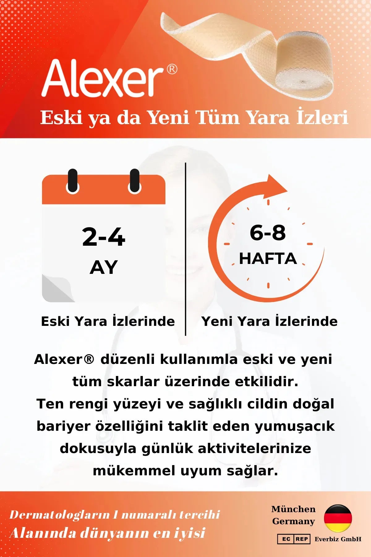 Alexer is effectief op alle oude en nieuwe littekens bij regelmatig gebruik. Het is aanbevolen door dermatologen en plastisch chirurgen vanwege de 3-voudige combinatie in zijn werkingsmechanisme.