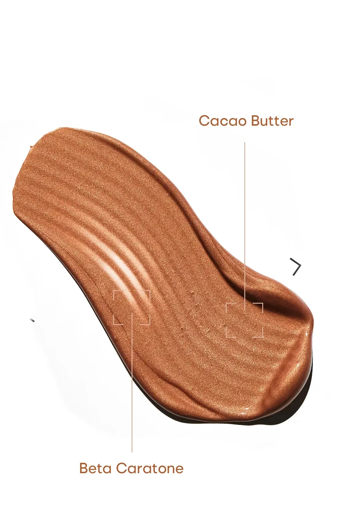 Het revitaliseert je huid met lichte, hydraterende druppels die je huid een natuurlijke bruine kleur en een gezonde gloed geven. De natuurlijke minerale pigmenten egaliseren de teint en creëren een stralende, warme uitstraling. De formule, verrijkt met sheaboter, glycerine en voedende oliën, verzacht je huid zonder een droog gevoel achter te laten.