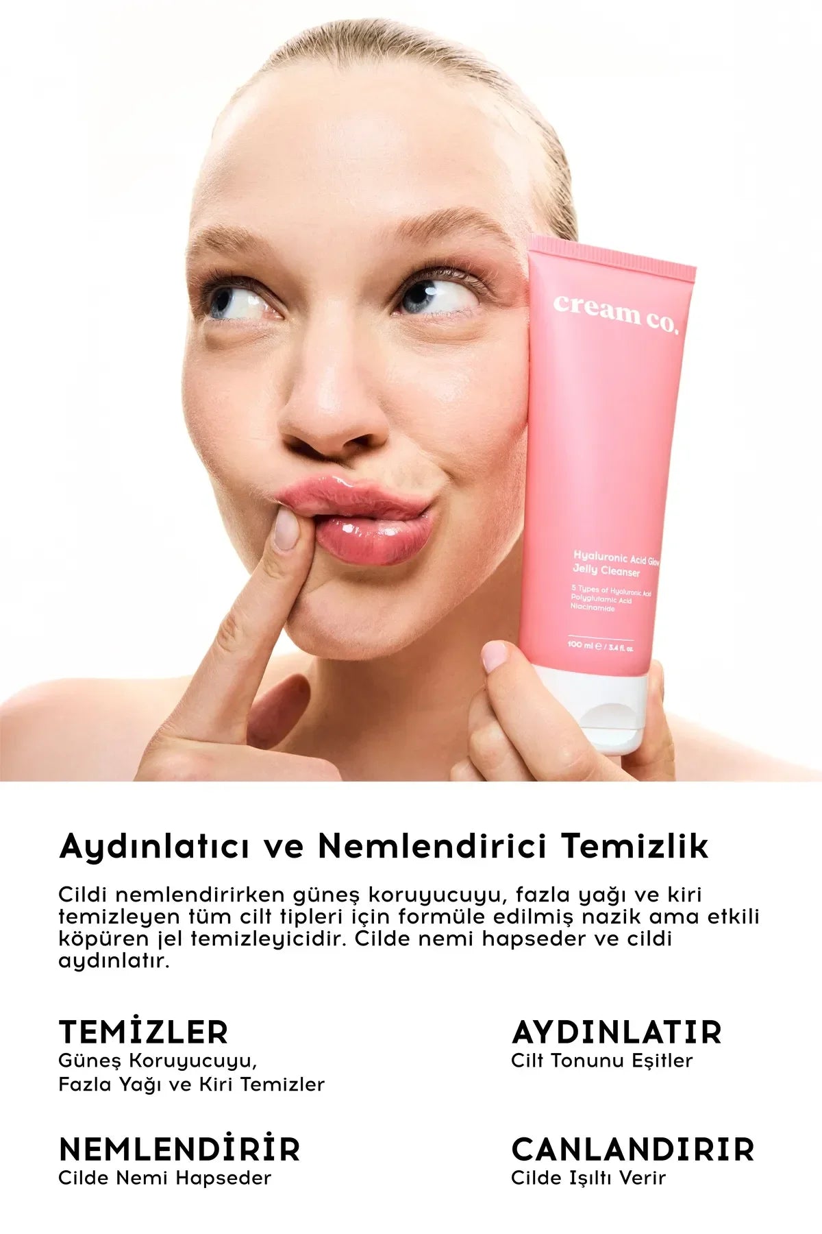 Cream Co. Hyaluronic Acid Glow Jelly Cleanser - Hydraterende Gezichtsreinigingsgel - 5 Soorten Hyaluronzuur - Niacinamide - PGA & Pentavitin - Alle huidtypen - 100 ml