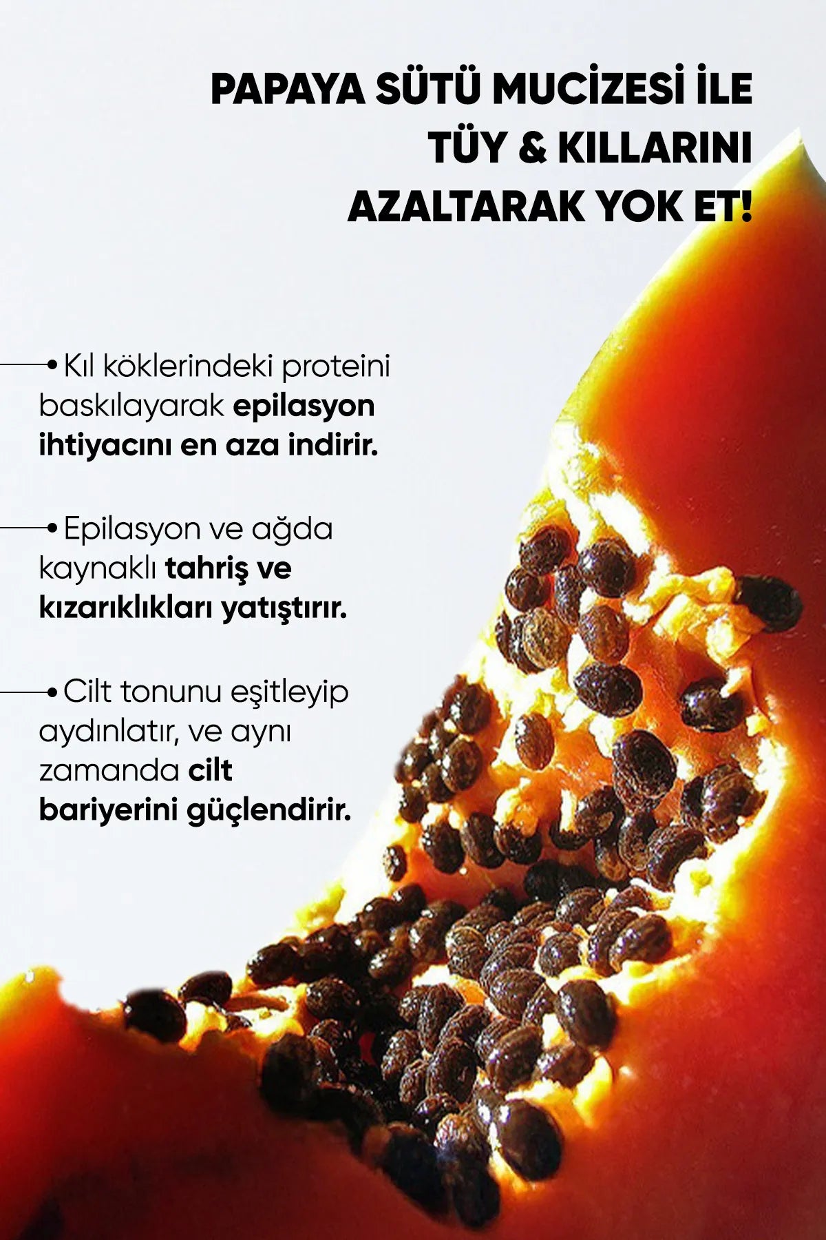 Papaïne-enzym richt zich op de haarzakjes, waardoor het haar na verloop van tijd steeds dunner wordt.