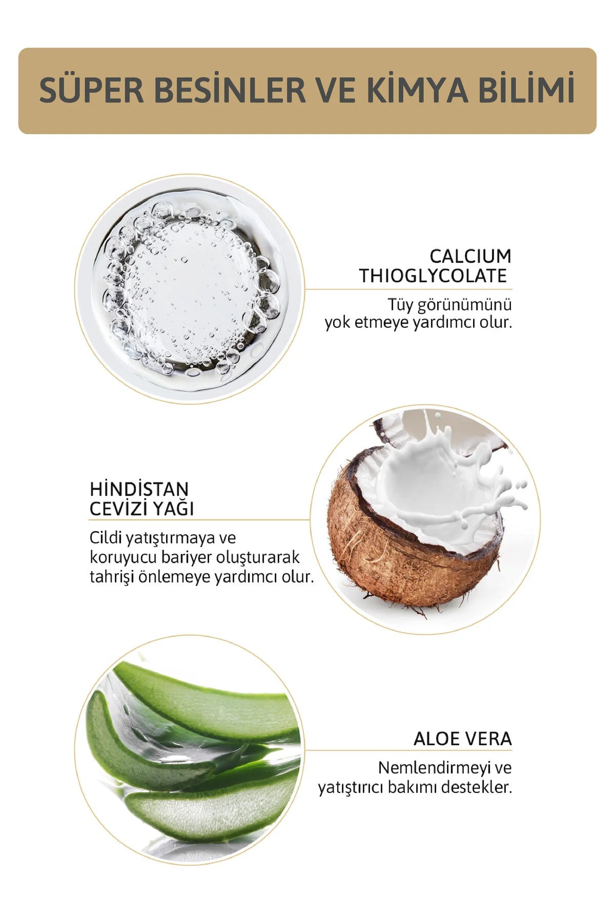 Inhoud: Aqua, Cetylalcohol, Glyceylstearaat, Cyclopentasiloxaan, Calciumthioglycolaat, Ceteareth-20, Cocos Nucifera-olie, Glycerine, Aloë Barbadensis-bladsap, Butyrospermum, Parkii-boter, Dimethicon, Isopropylmyristaat, Allantoïne, Fenoxyethanol, Caprylylglycol, Parfum, Panthenol, Tocoferylacetaat.